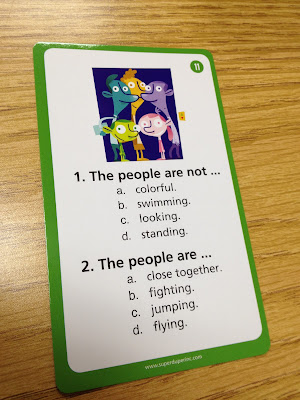 The inferencing cards include simple ideas such as the example above and also more complex inferences that require reasoning.